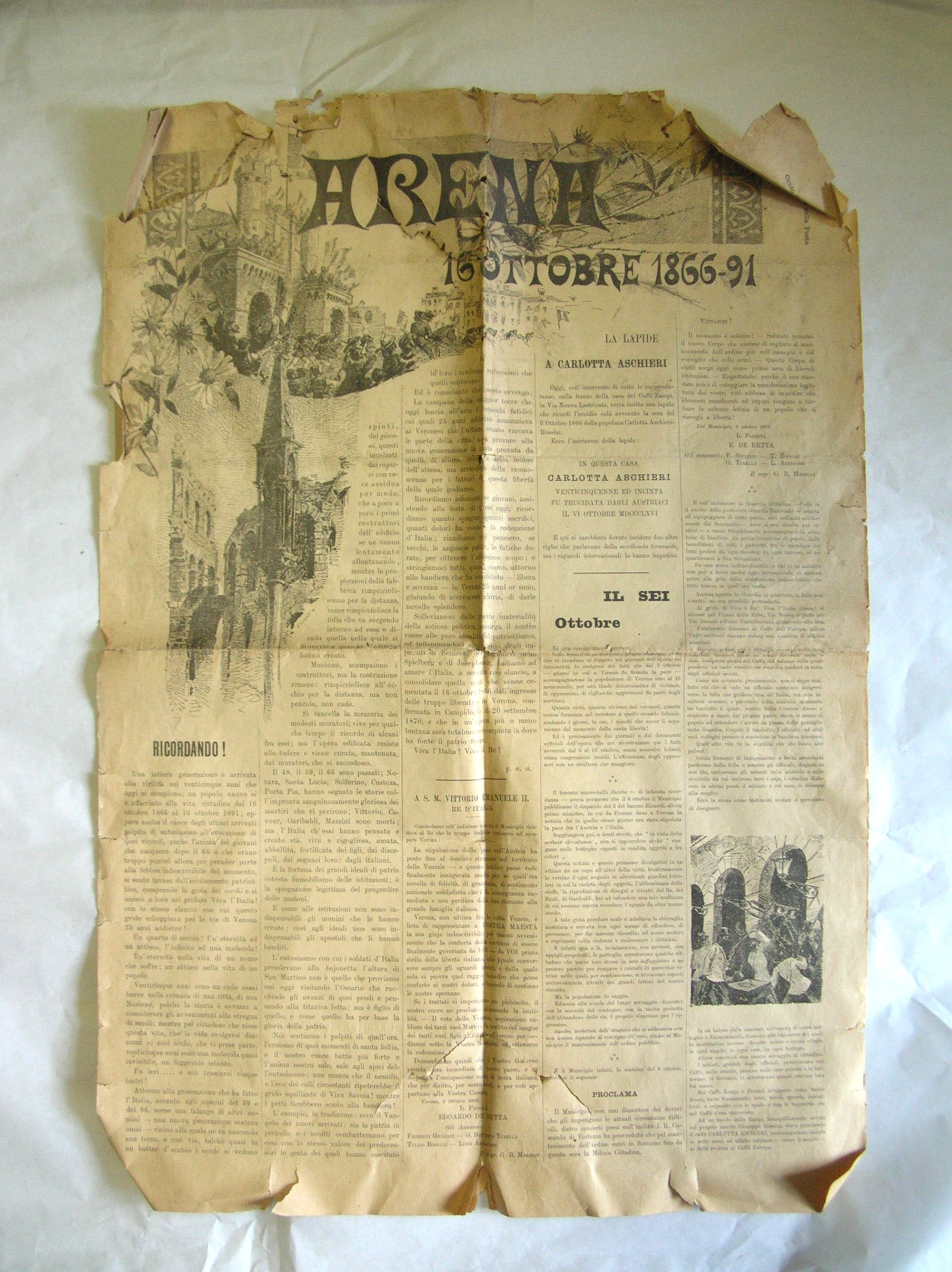 - Edizione speciale del giornale L'Arena: articoli commemorativi per il 25° anniversario dei fatti dell'ottobre 1866 e della liberazione della cittą di Verona dal dominio austriaco