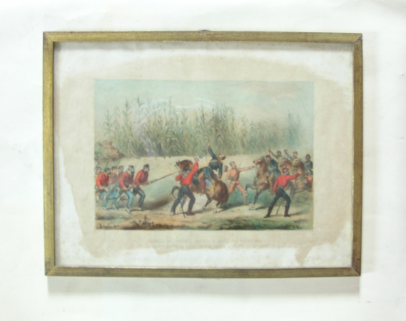 - Sotto l'immagine "GARIBALDI CHE UCCIDE IL CAPITANO DI CAVALLERIA NAPOLITANO NELLA CARICA FATTA DA QUEST'ULTIMA PRESSO IL PONTE DI MILAZZO." e a lato, a matita "14"; a destra "Litog. Perrin Torino".