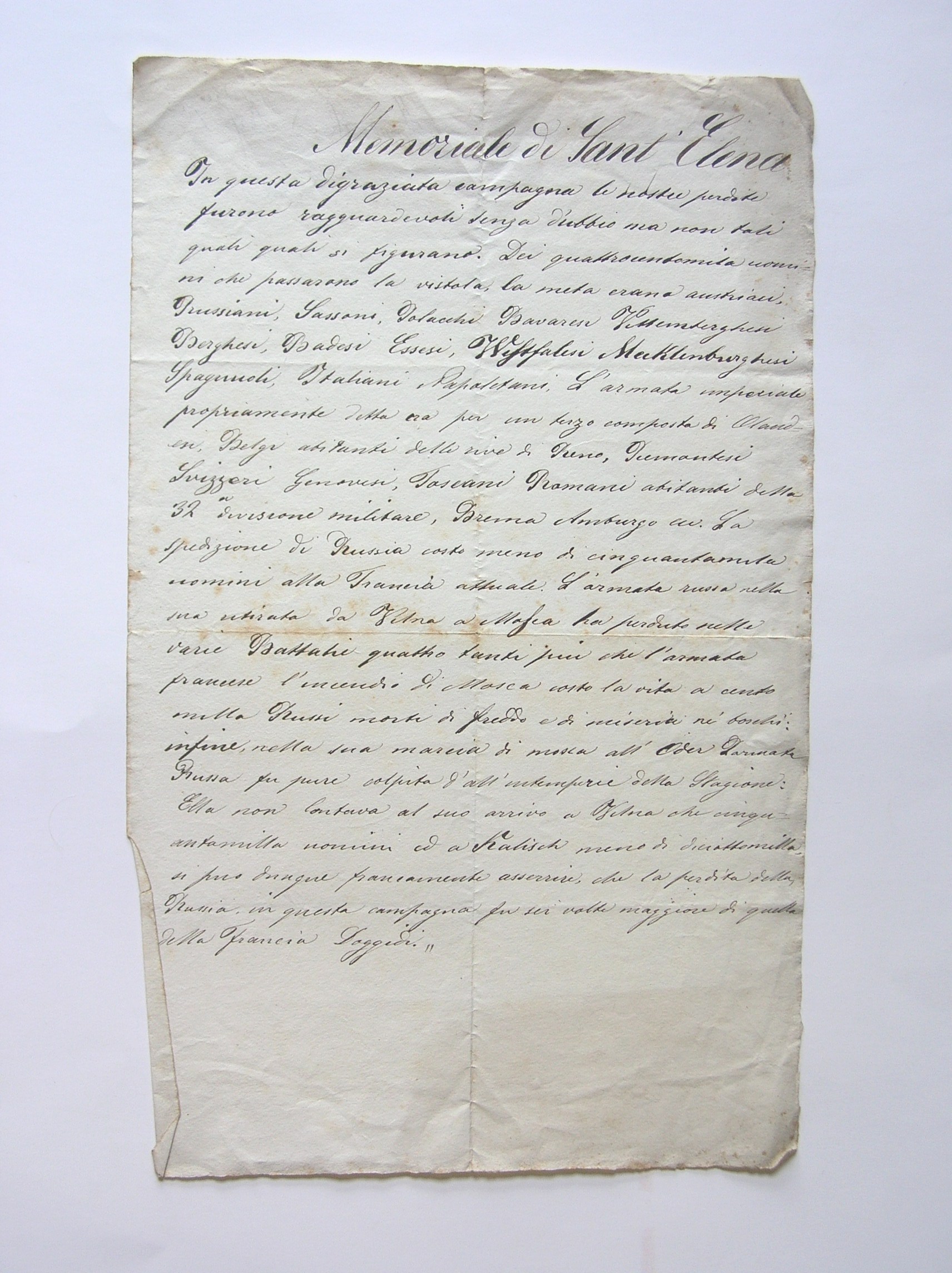 - Sul retro, a penna: "Memoriale di Nap. I° ad Elena".