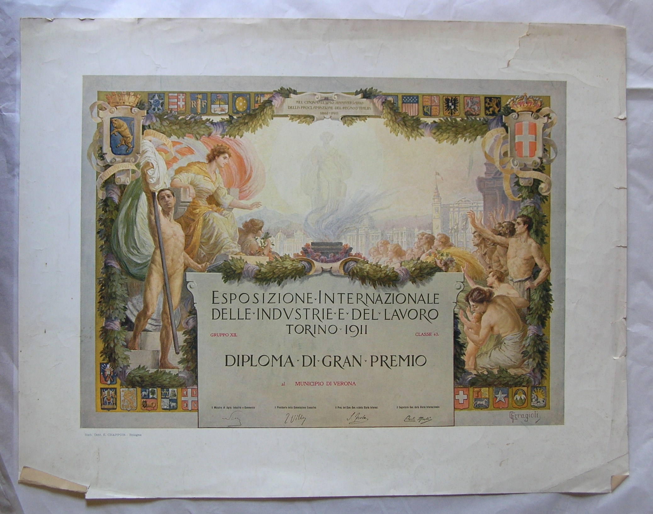 - Diploma di Gran Premio al Municipio di Verona all'Esposizione Internazionale delle industrie e del lavoro di Torino (1911)
