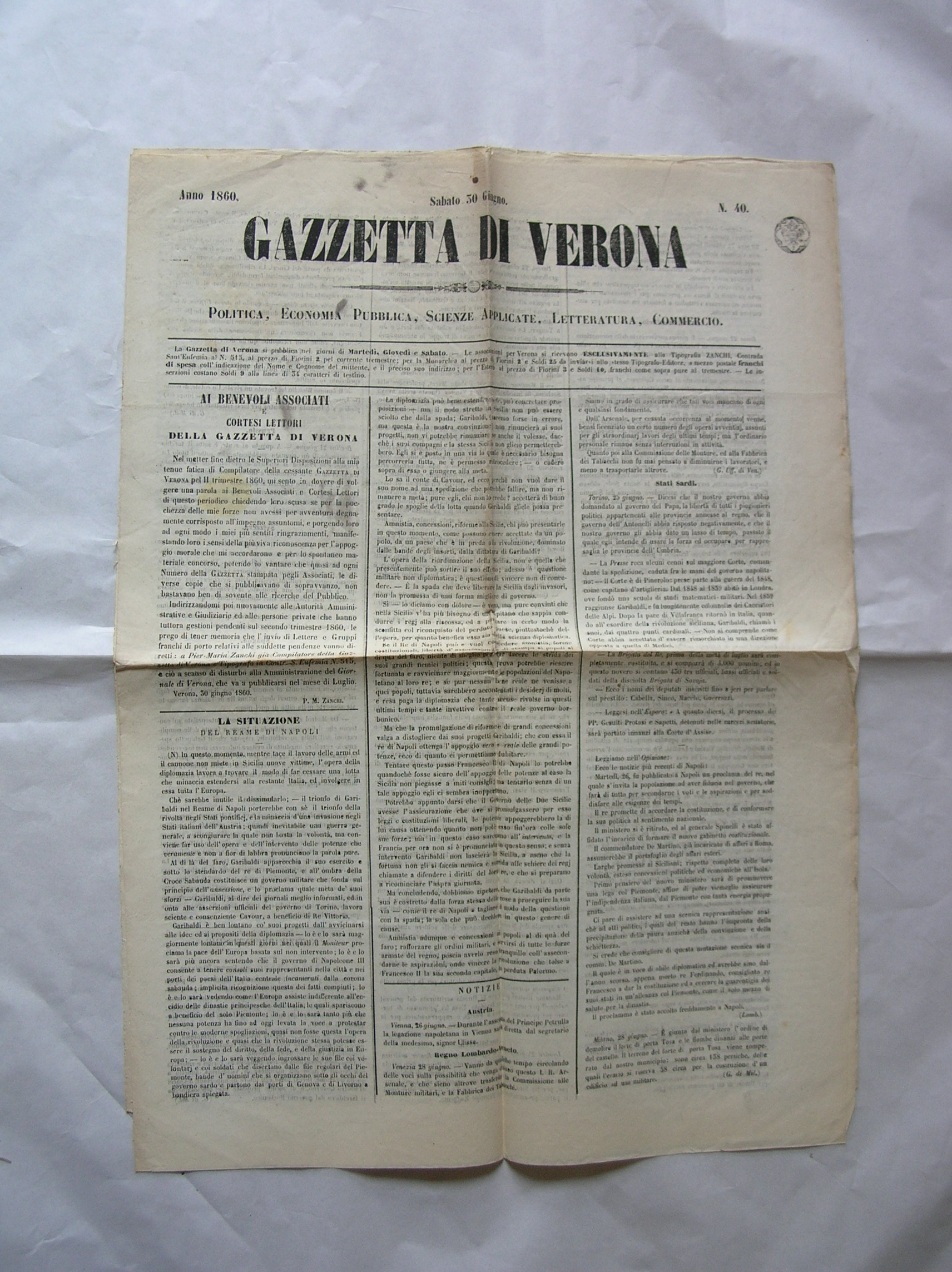 - La Gazzetta di Verona del 30 giugno 1860