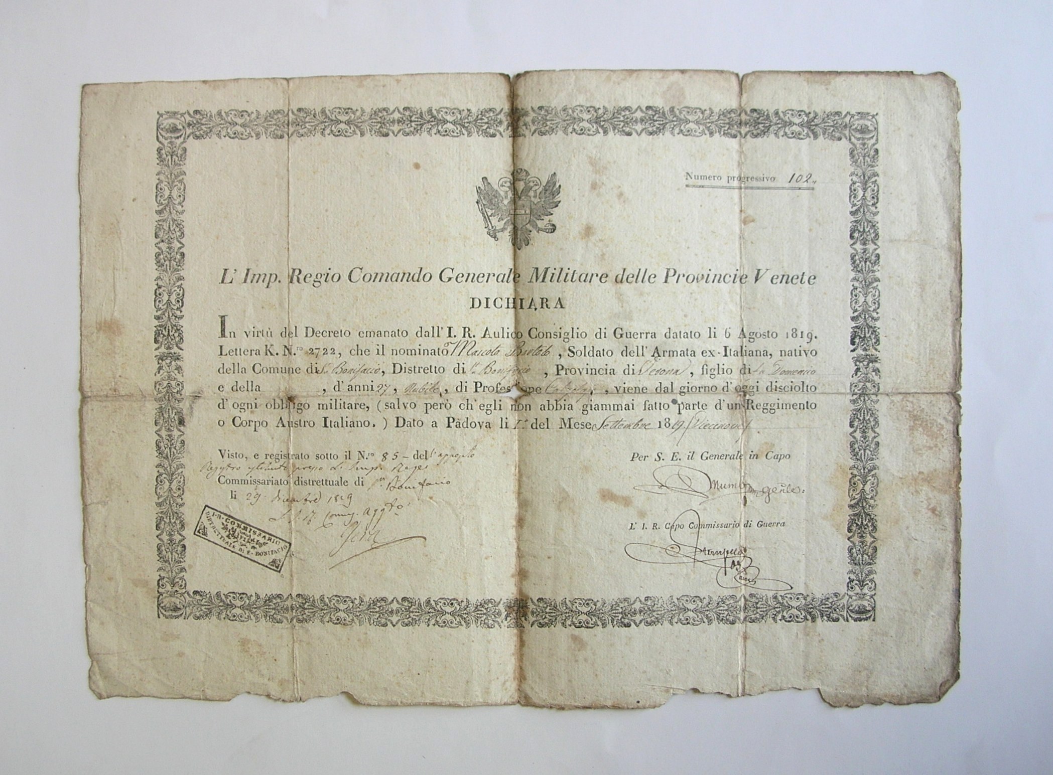- Timbro a inchiostro: "I.R. COMMISSARIO DISTRETTUALE DI S. BONIFACIO"