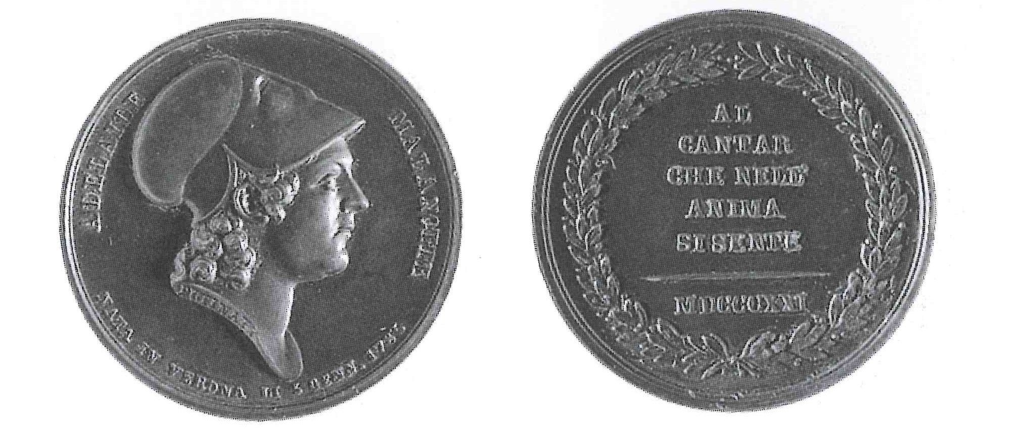 - D. "ADELAIDE MALANOTTE"; nel taglio del busto"NATA A VERONA LI 5 GENN . 1785".