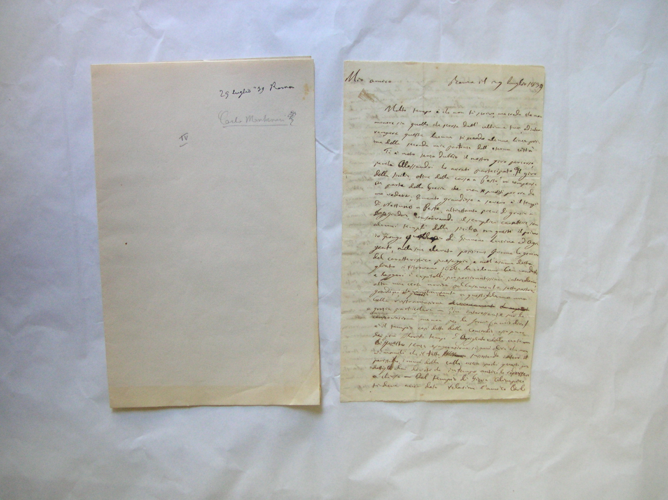 - Lettera di Carlo Montanari a Luigi Castelli del 29 luglio 1839 da Roma