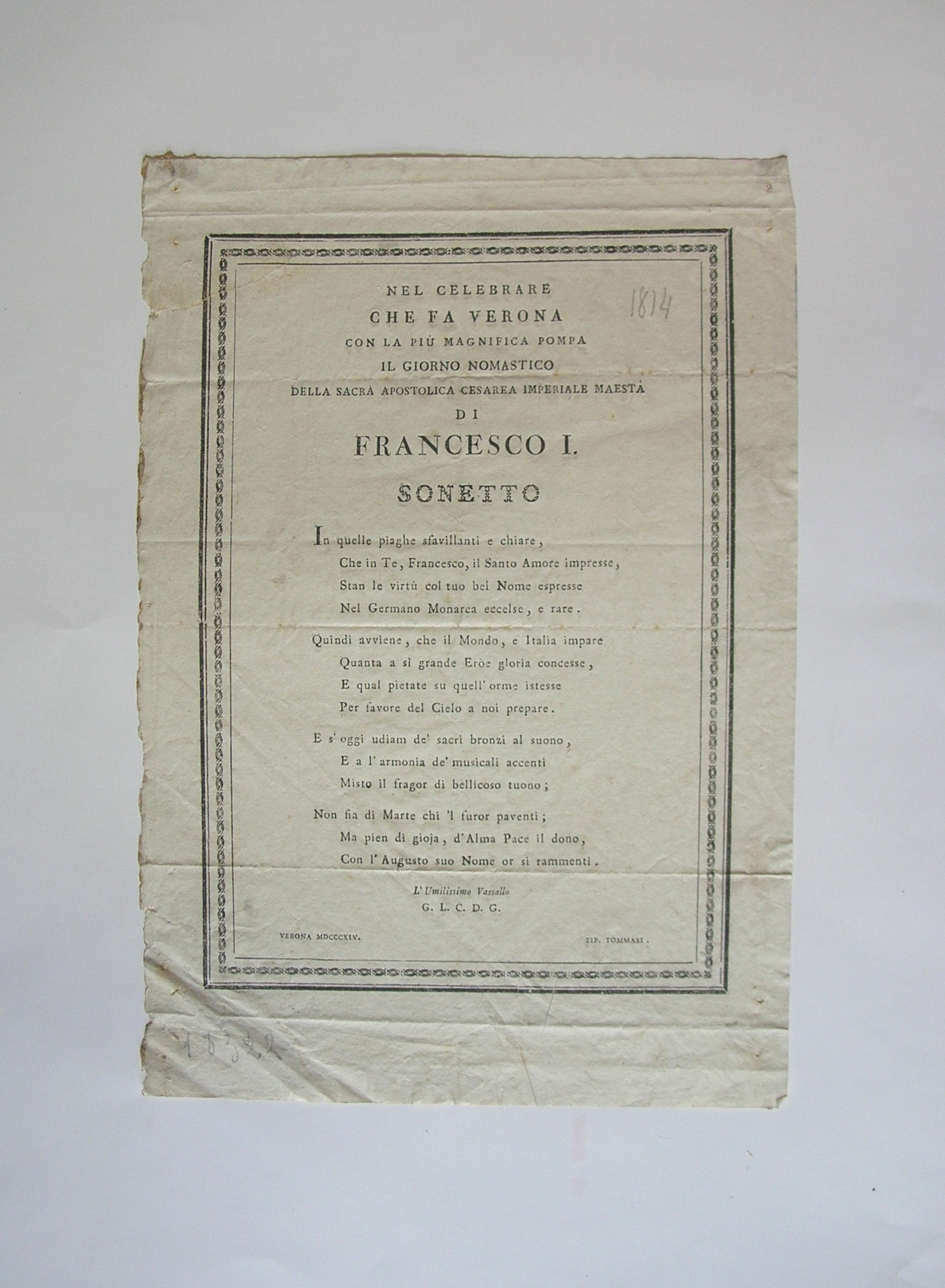 In calce: "VERONA MDCCCXIV.", "TIP. TOMMASI."; a matita: "18322" - DESCRIZIONE
