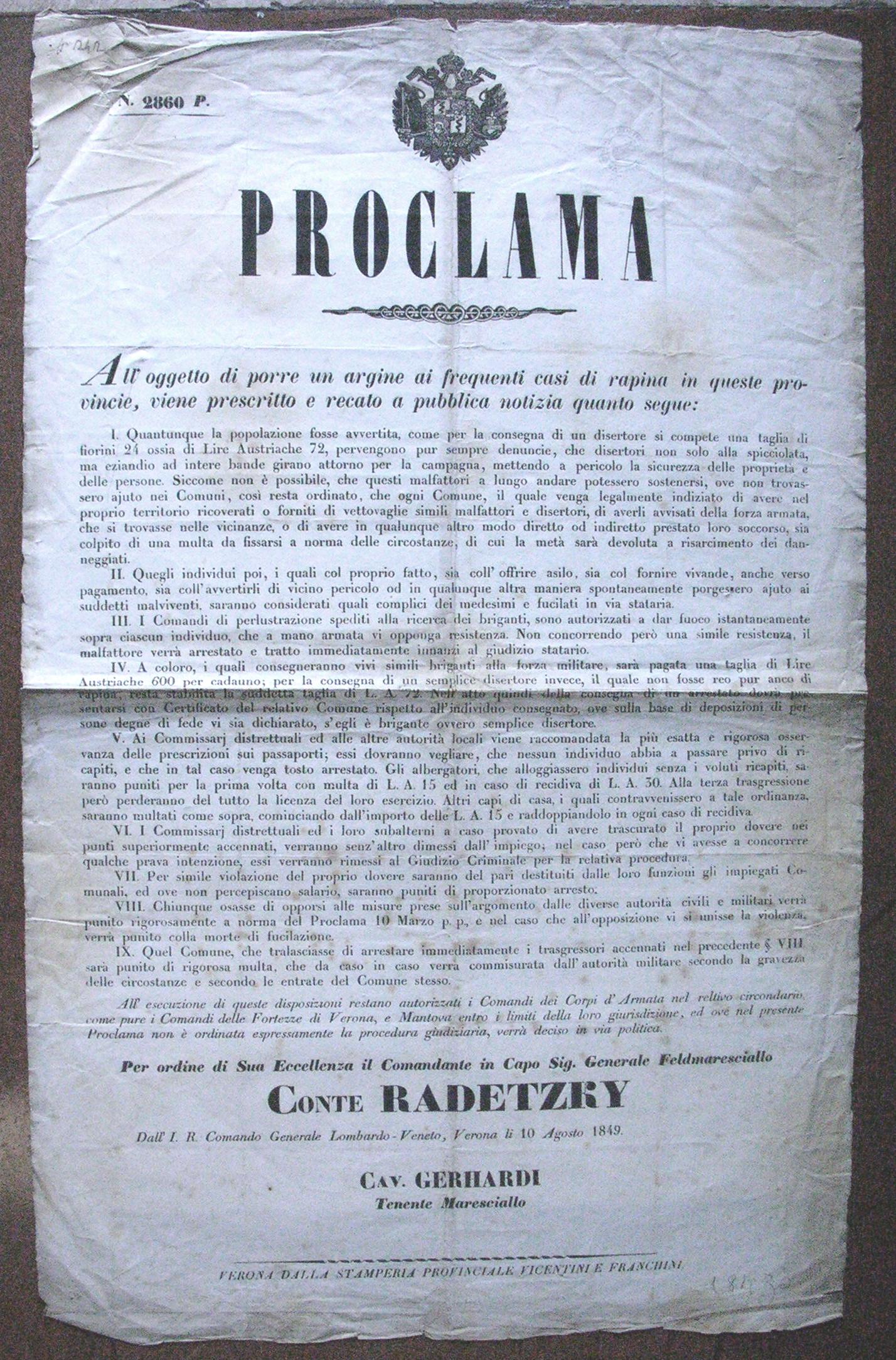 - Proclama di Radetzky per arginare i frequenti casi di rapina
