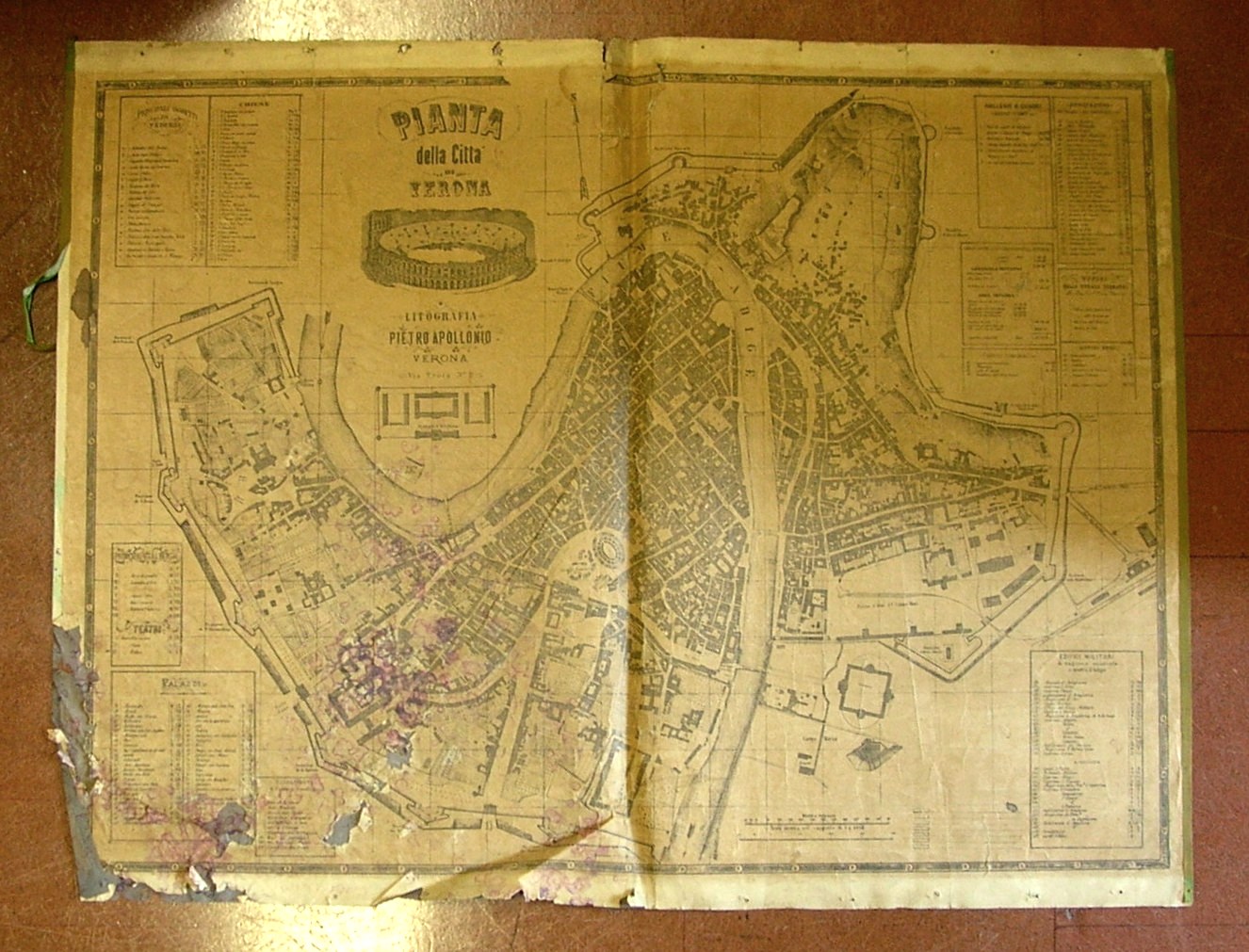 - Pianta della cittą di Verona con le indicazioni dei principali siti: musei, palazzi, chiese, alberghi, edifici militari e uffici