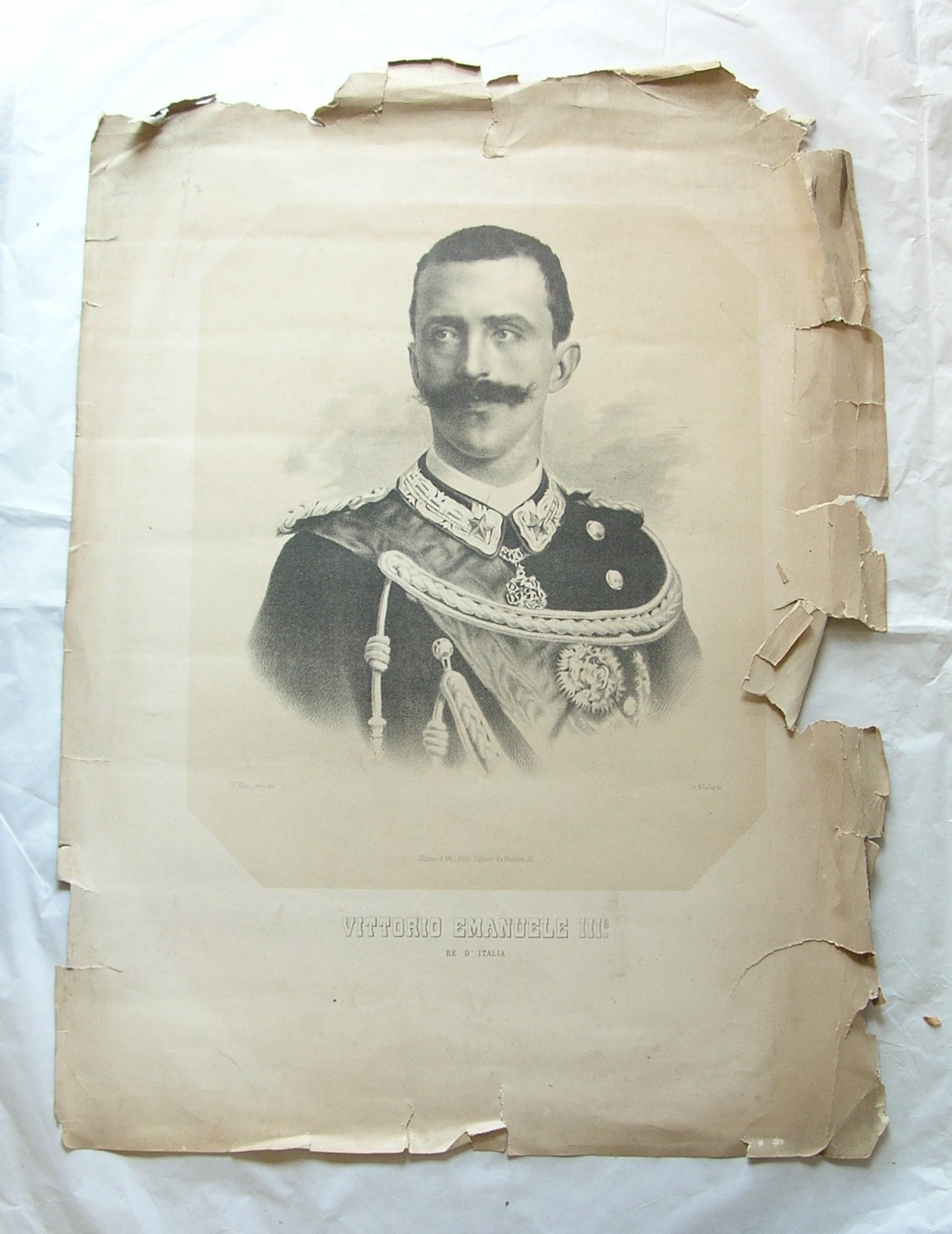 - Entro il campo, a sinistra: "V. Malinverno dis.", a destra: "Lit. A. Vallardi" e al centro: "Milano A. Vallardi Editore - Via Moscova 40".